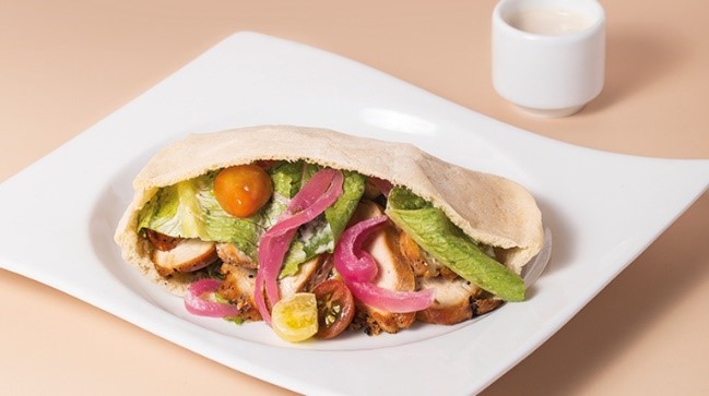 Sabores de México: chile chipotle, crema agria, queso, aguacate, pollo, pico de gallo y tortilla mexicana.