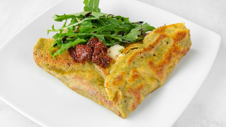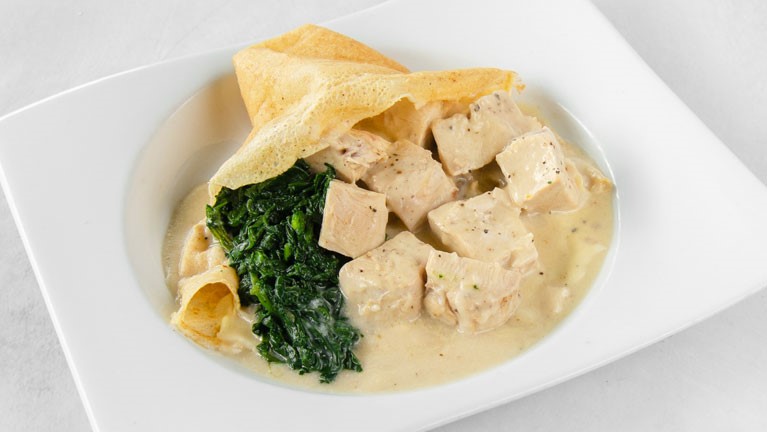 Crepe de pollo + espinaca + queso = no lo dudes.