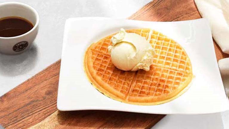 Mini Waffles con helado de Vainilla y crema chantilly.