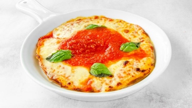 Mozzarellina, salsa napolitana con albahaca y queso parmesano.
