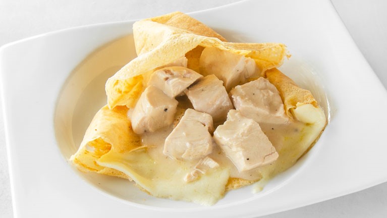 Crepe de pollo + brócoli + queso = sencillamente delicioso.