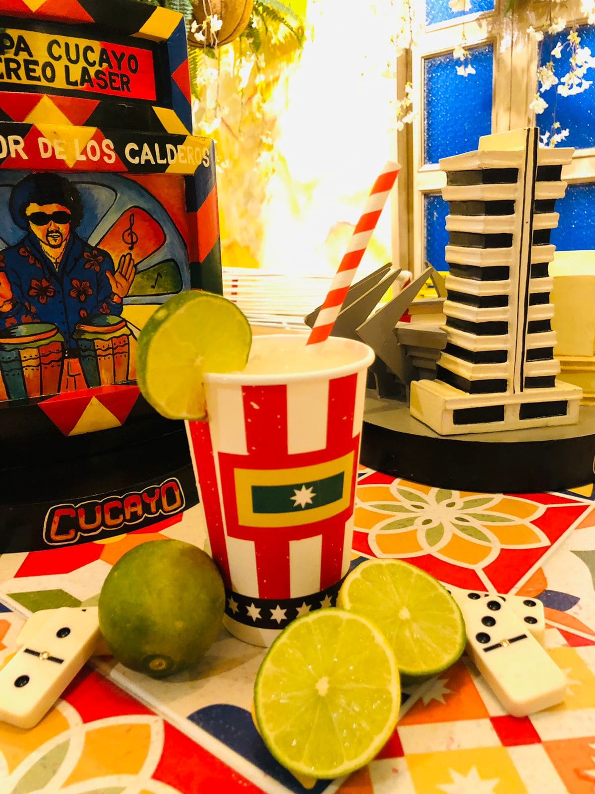 Jugo de limón con coco en agua.
