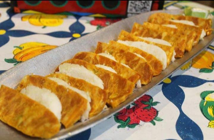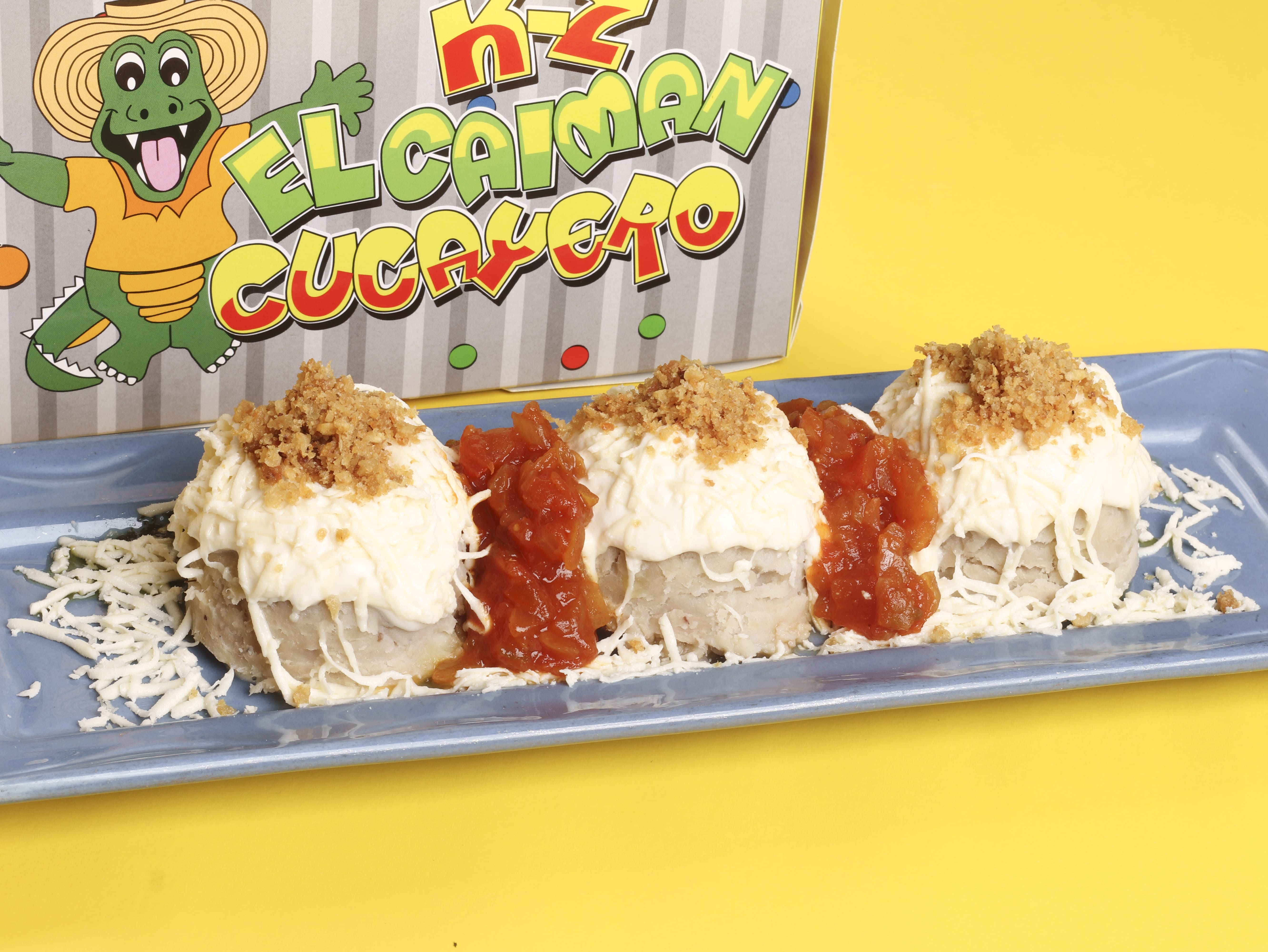 Base de ñame, con sofrito de cebolla, ajo, mantequilla, cebolla roja, adición de queso costeño, suero costeño, chicharrón molido acompañado con arroz blanco y aguacate.