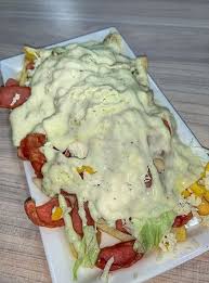 Papas francesas, lechuga, papa chongo, salchichas, queso costeño, salsas