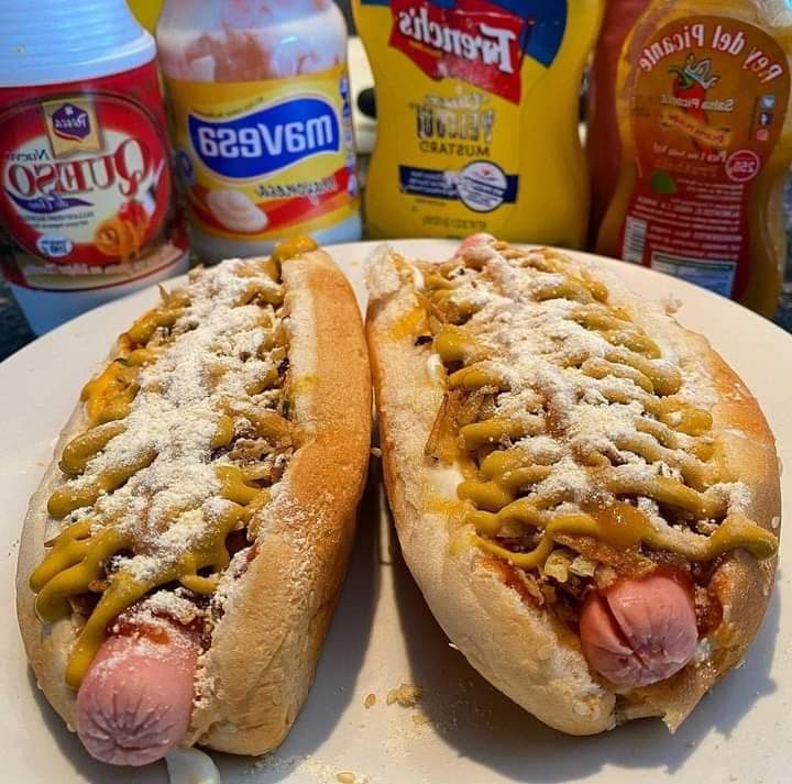 Pan artesanal, lechuga, Salchicha, Queso, papa chongo, salsas de la casa