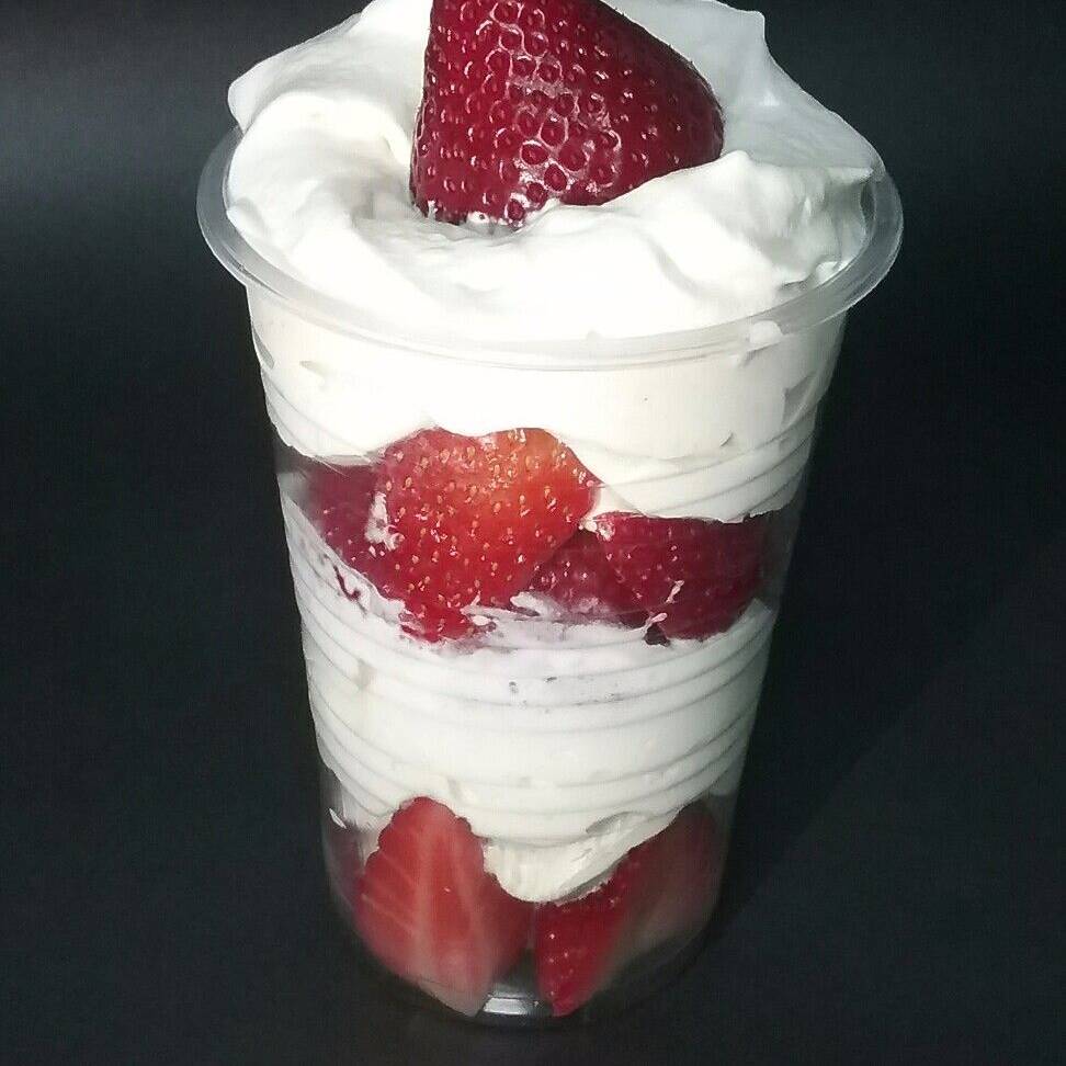 vaso de 7onz , fresas , crema chantilli