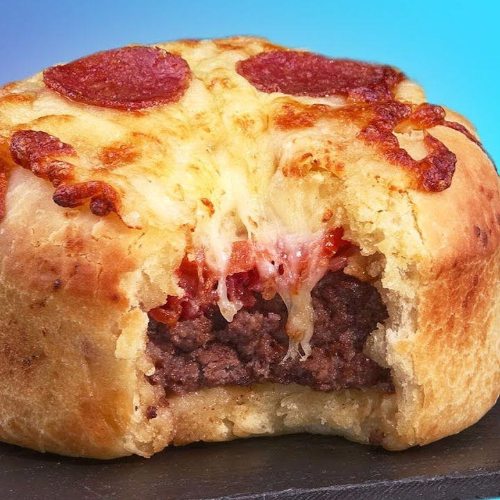 pizza envuelta de carne ,queso jamon, tocineta
