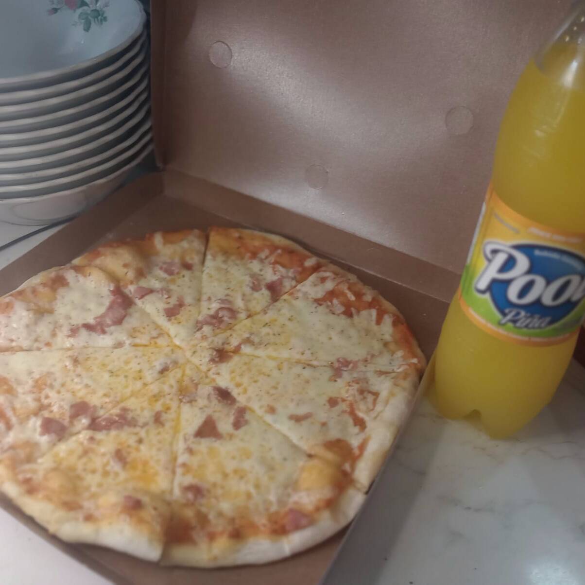 pizza de jamon y queso mas gaseosa pool litro