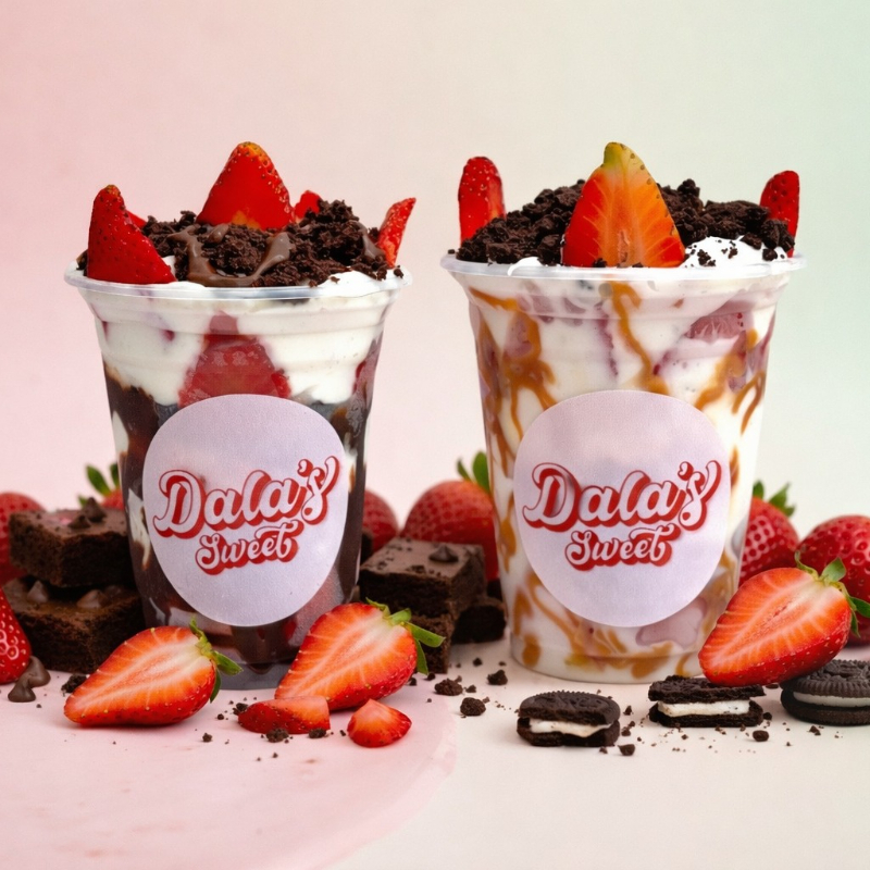 Fresas con crema, trozos de brownie, arequipe y un toque de leche condensada. Una combinación irresistible.