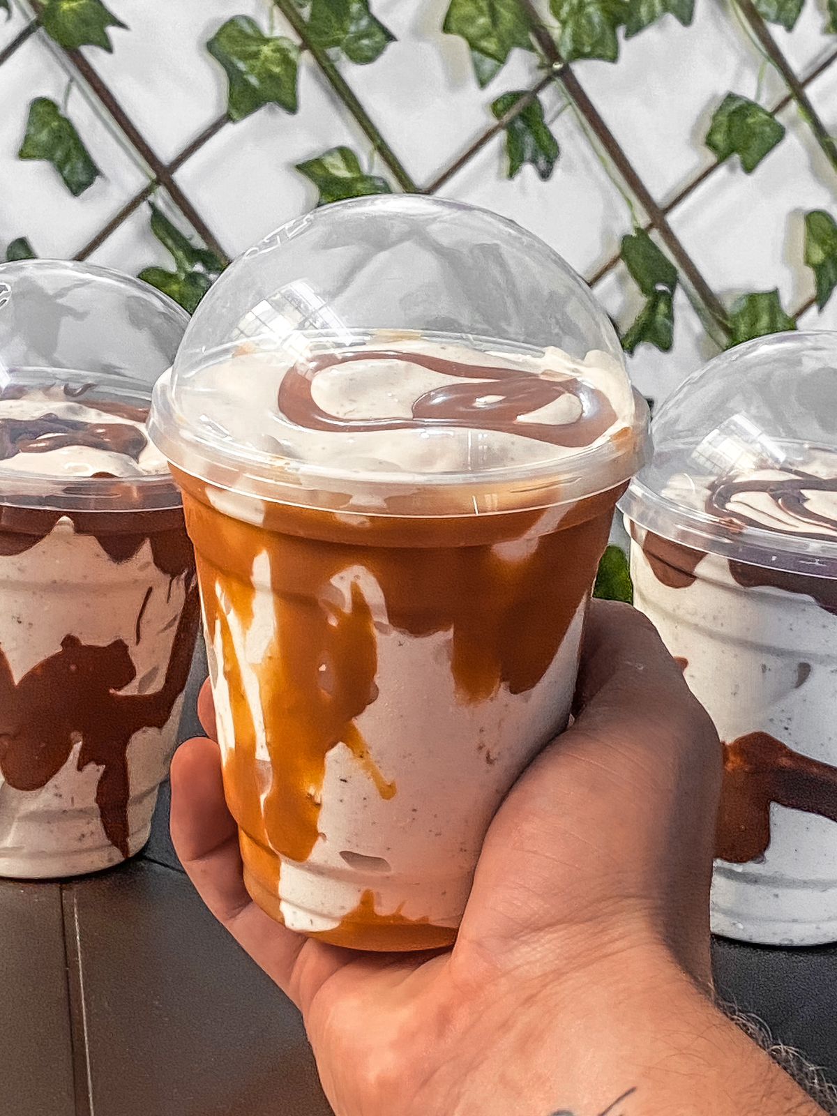 Deliciosa malteada a base de vainilla con pequeños trozos de brownie y salsa de arequipe.