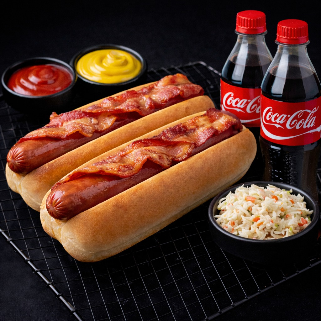 Dos Big Doggger + 2 gaseosas + 2 tocinetas + 1 coleslaw.
