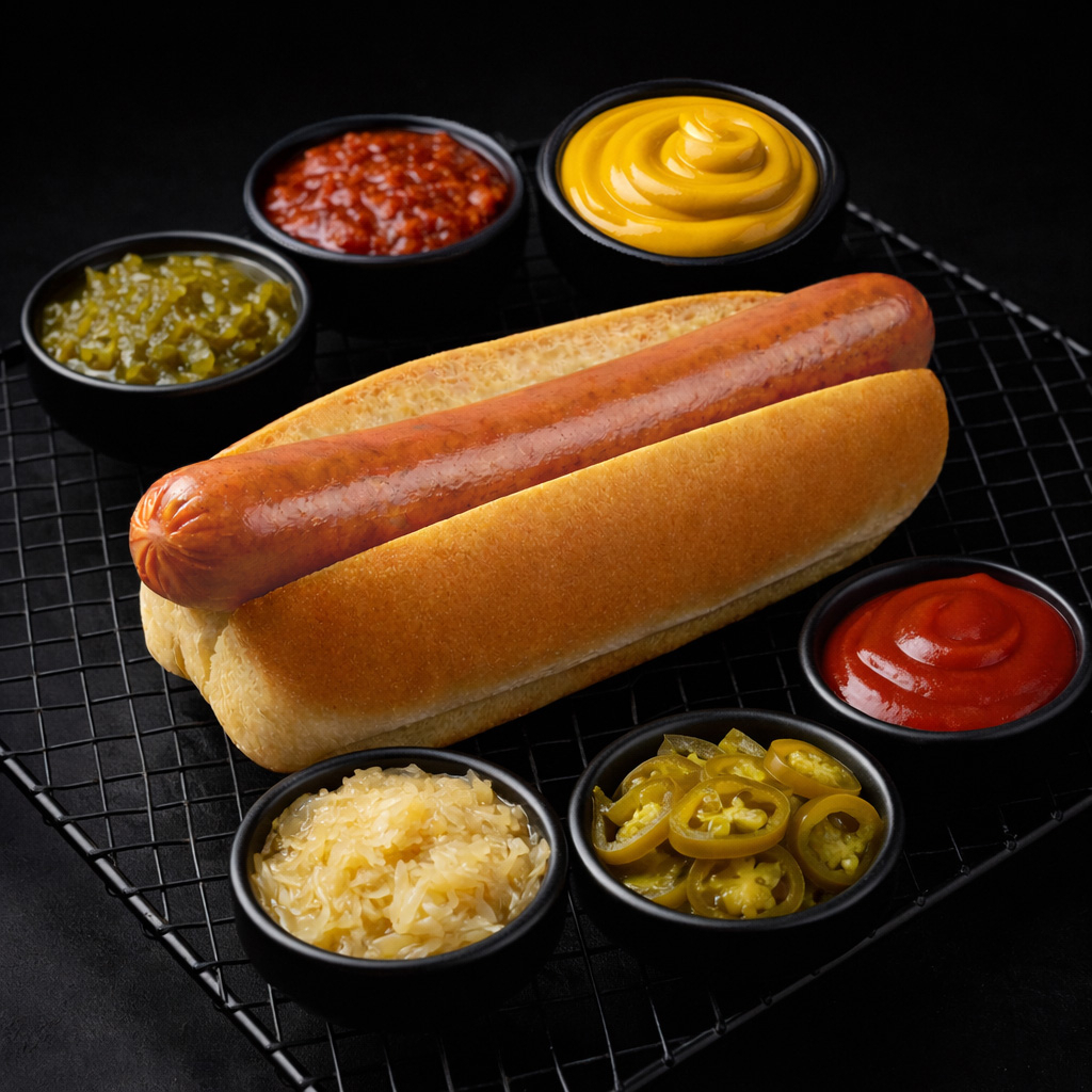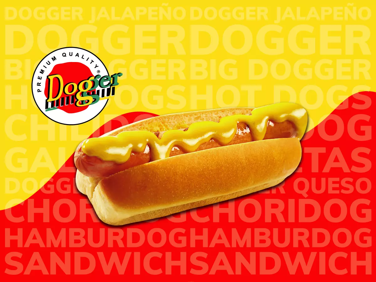 Nuestro tradicional hot dog con salchicha Dogger. Adiciones y toppings de tu elección.