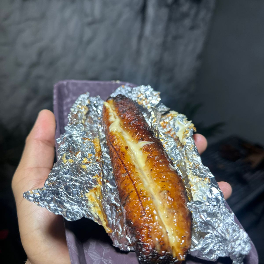 Plátano maduro en su punto, asado para resaltar su dulzor natural.