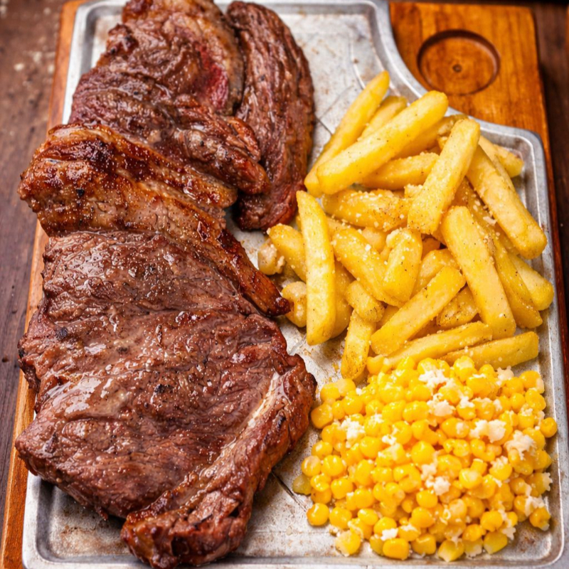 300 g De proteína (punta gorda) de alta calidad, acompañada de papas (francesa o casco) y ensalada.
