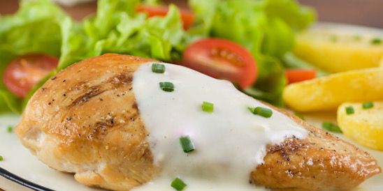 Deliciosa pechuga de pollo hecha al grill, acompañado de deliciosa salsa cremosa al estilo bechamel, ensalada fresca y papas a la francesa en chimichurri argentino.