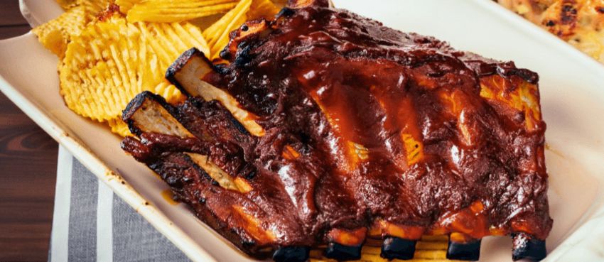 150 g De costilla BBQ, bañadas en deliciosa salsa BBQ tailandesa, papas francesas y ensalada fresca con chimichurri.