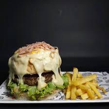 Hamburugesa de Pollo y Carne*1 + Porción de Papas francesas*1 + Gaseosa Personal 400 Ml*1