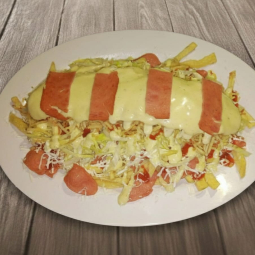 Rica papa francesa queso costeño salchicha jamón gratinado papa ripio salsa tartara salsa tomate lechuga