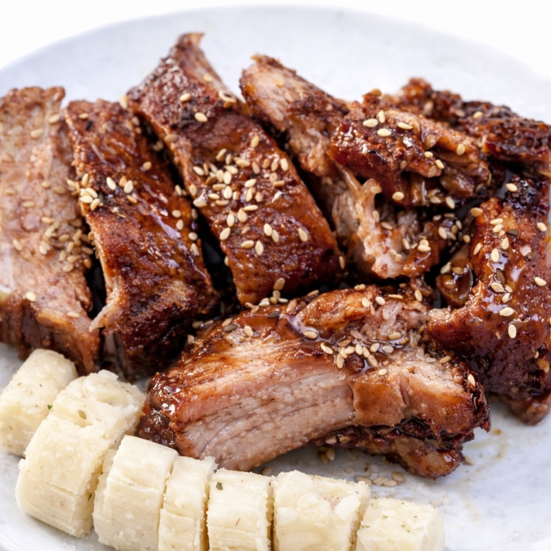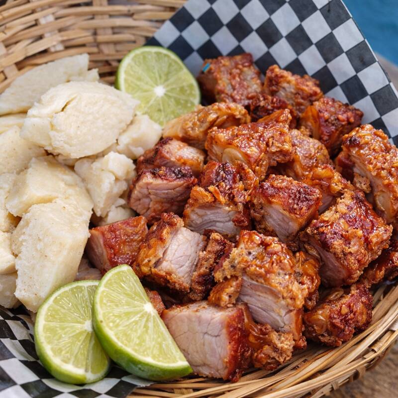 200Gr de Chocharron al barril, acompañados de platanitos de platano verde