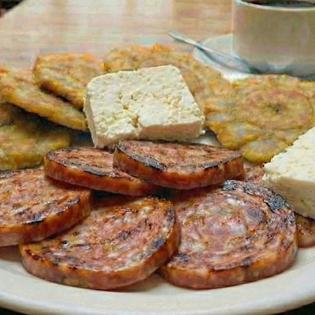 Salchichón y queso costeño acompañado de patacones