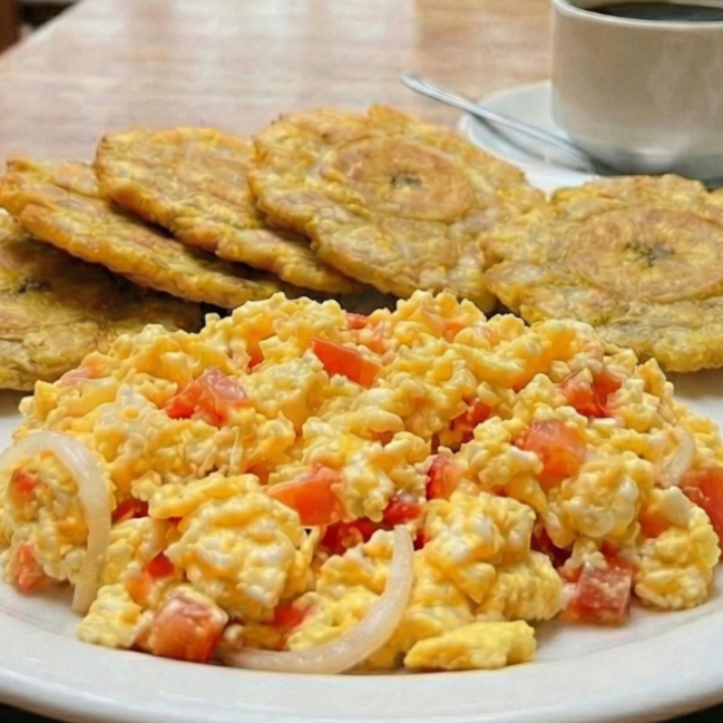 Huevos revueltos con patacones