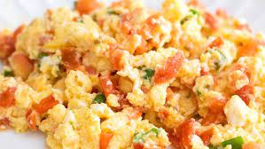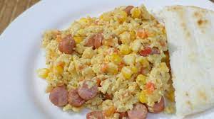 2 Huevos revueltos acompañados tajadas de guineo verde o yuca cocida.