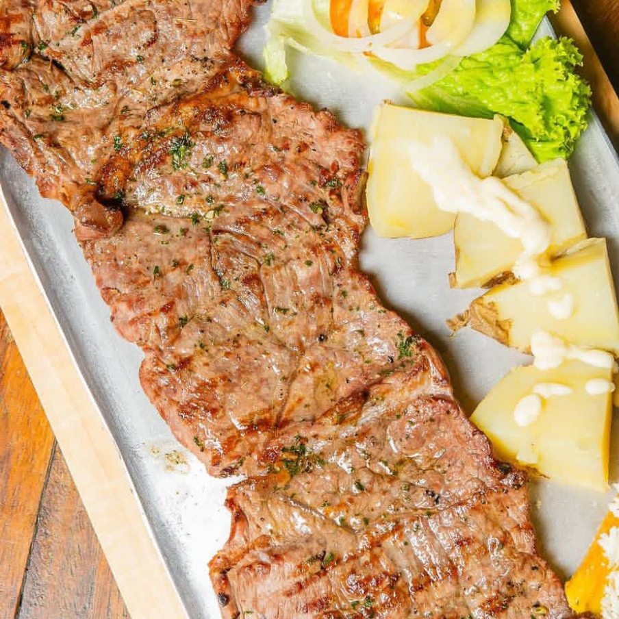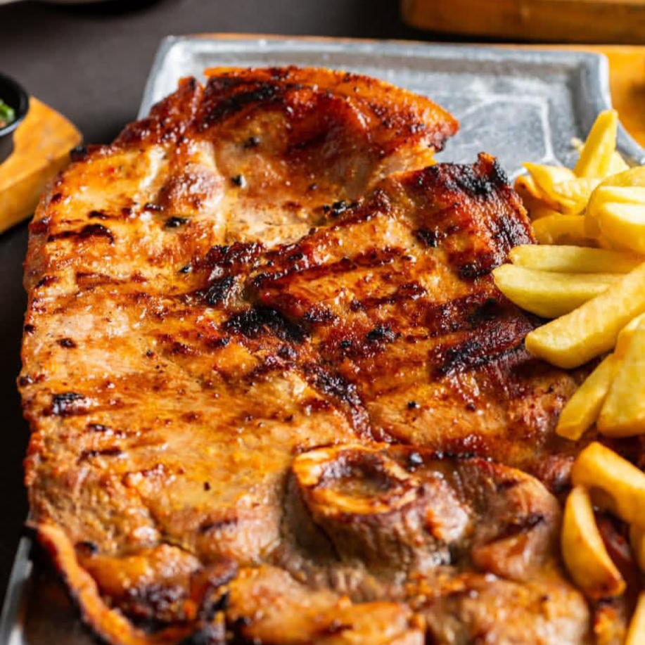 Papa francesa, carne, pollo, chorizo y butifarra asados , salteados con nuestra chimichurri , lechuga fresca, papa chongo, queso costeño, salsa tartara y piña.