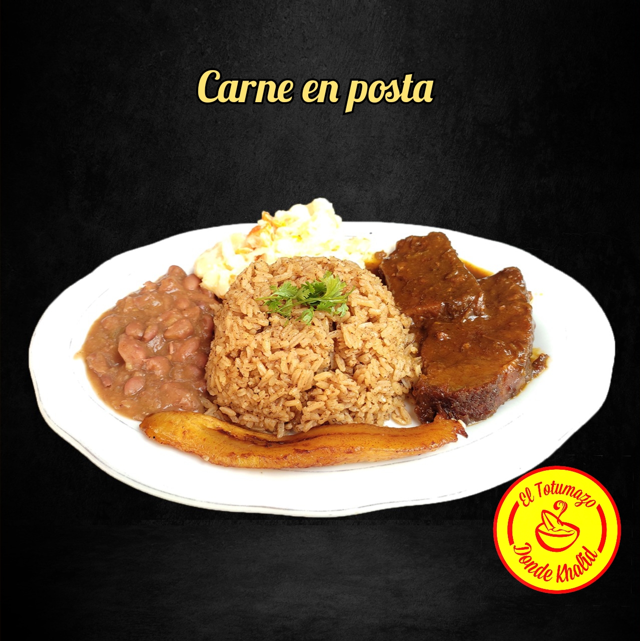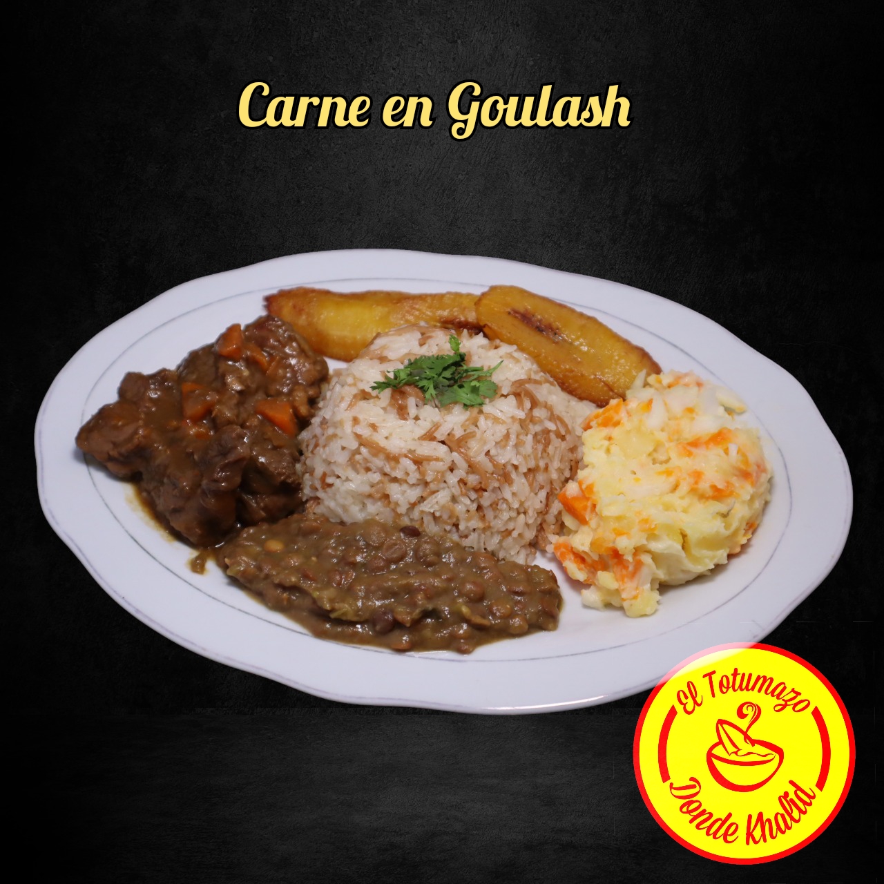 Acompañada con arroz, ensalada del día, tajadas de plátano, granos y sopa.