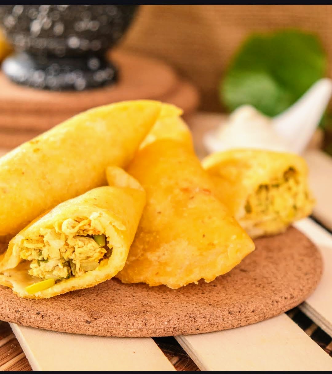 Harina de trigo, queso mozzarella, carne, pollo y salsa a elegir.