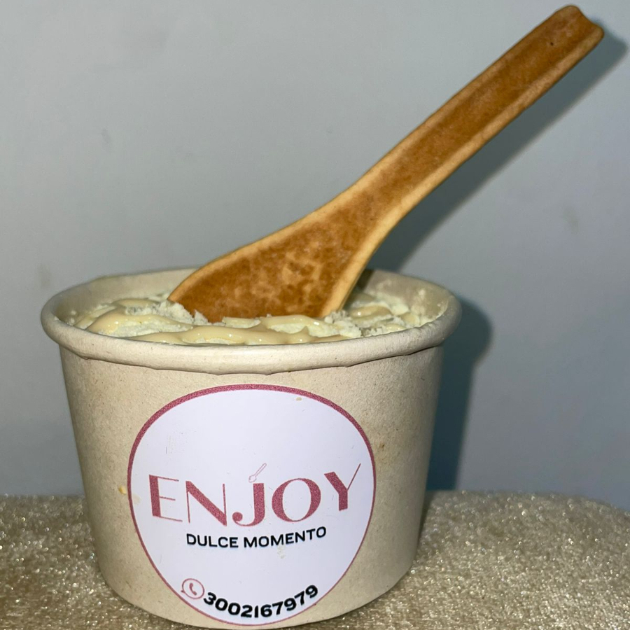 Delicioso pave de leche klim con capas de galleta ducales, topping de leche klim y leche condensada. Acompañado de una cuchara comestible
