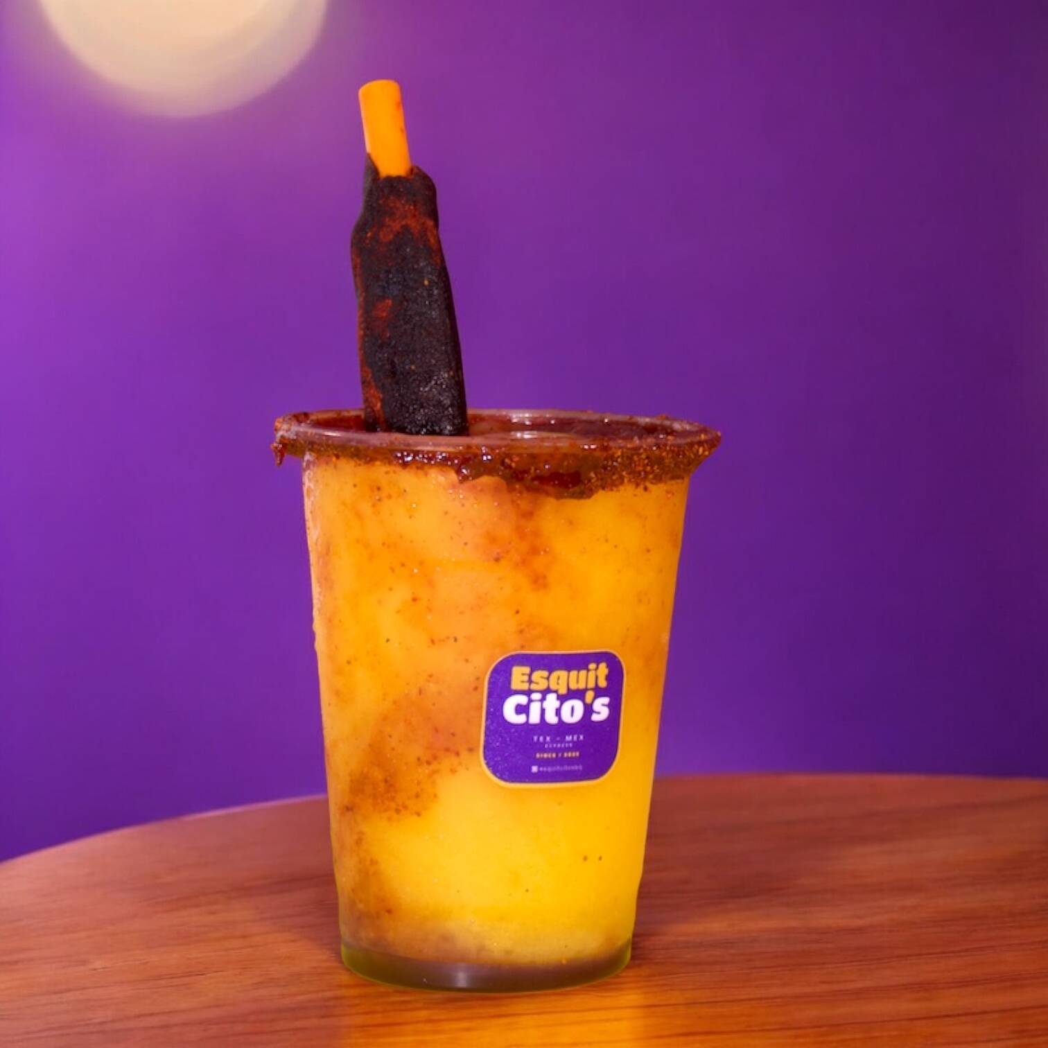 Jugo de (maracuya, mango o maracumango) frappe, con chamoy, tajín. No incluye el banderín.
