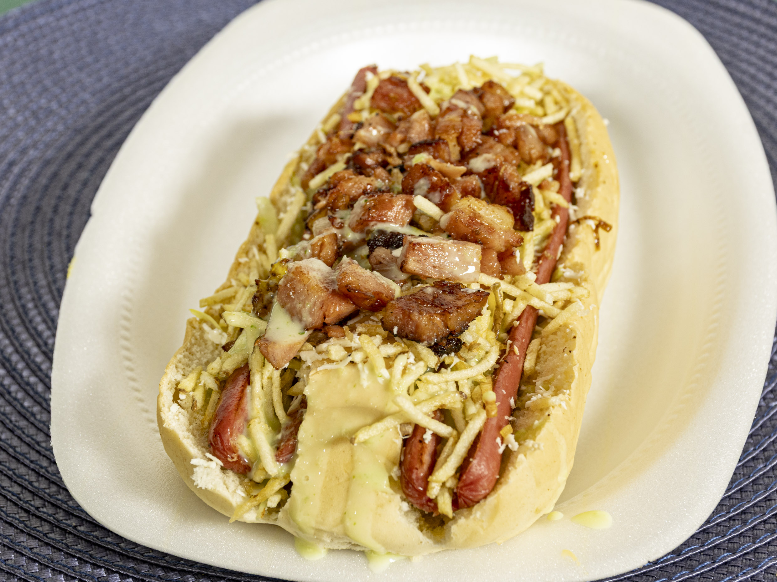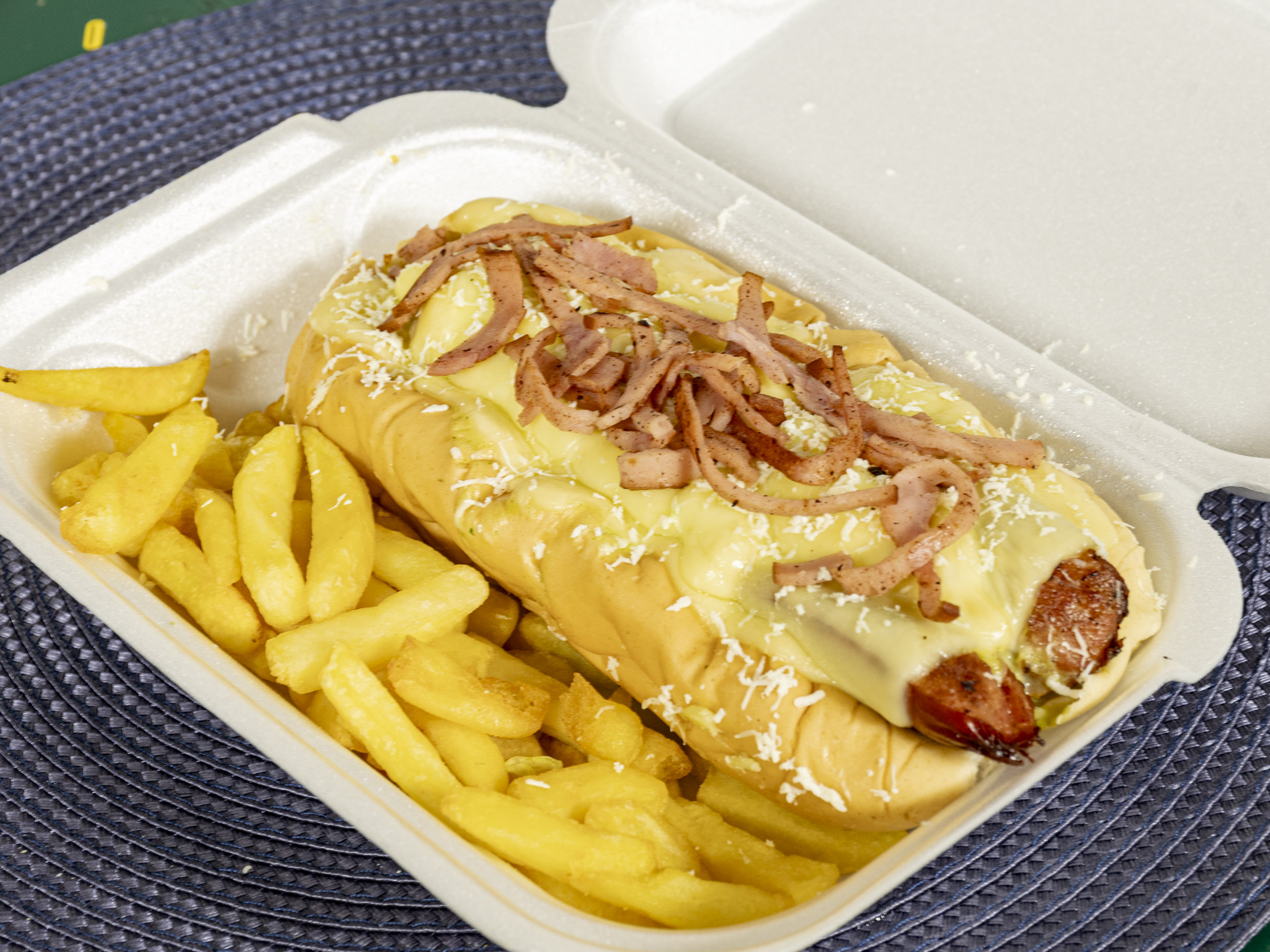 Trae: Salchicha, Papas Fritas, Tocineta, Queso Costeño, Salsas,