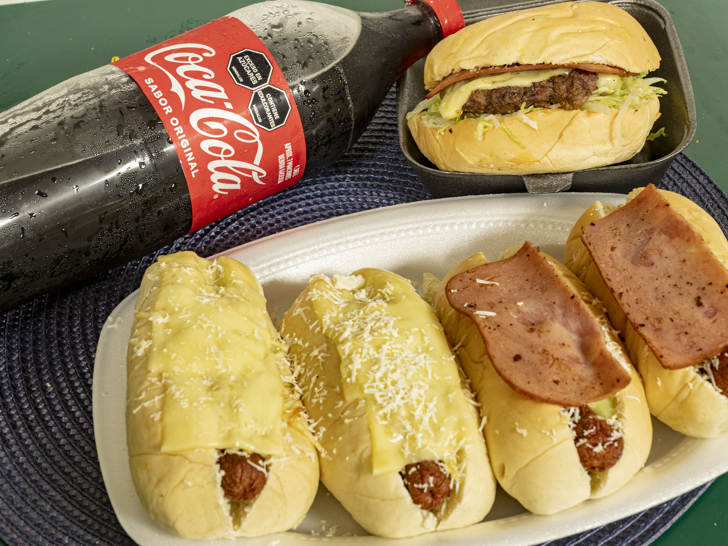 Trae: 4 Mini Perros, Burger Sencilla, Gaseosa 1,5lt