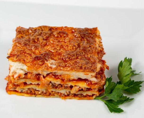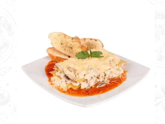 Exquisita combinación de salsas bechamel y pomodoro con carne de res y pollo. Pasta envuelta en los aromas del orégano, albahaca, aceite de oliva extra virgen y queso parmesano. Acompañada de pan tostado.