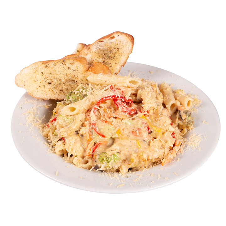 Deliciosa salsa alfredo a base de bechamel con jamón, champiñones frescos y queso mozzarella. Pasta envuelta en los aromas del orégano, albahaca, aceite de oliva extra virgen y queso parmesano. Acompañada de pan tostado.