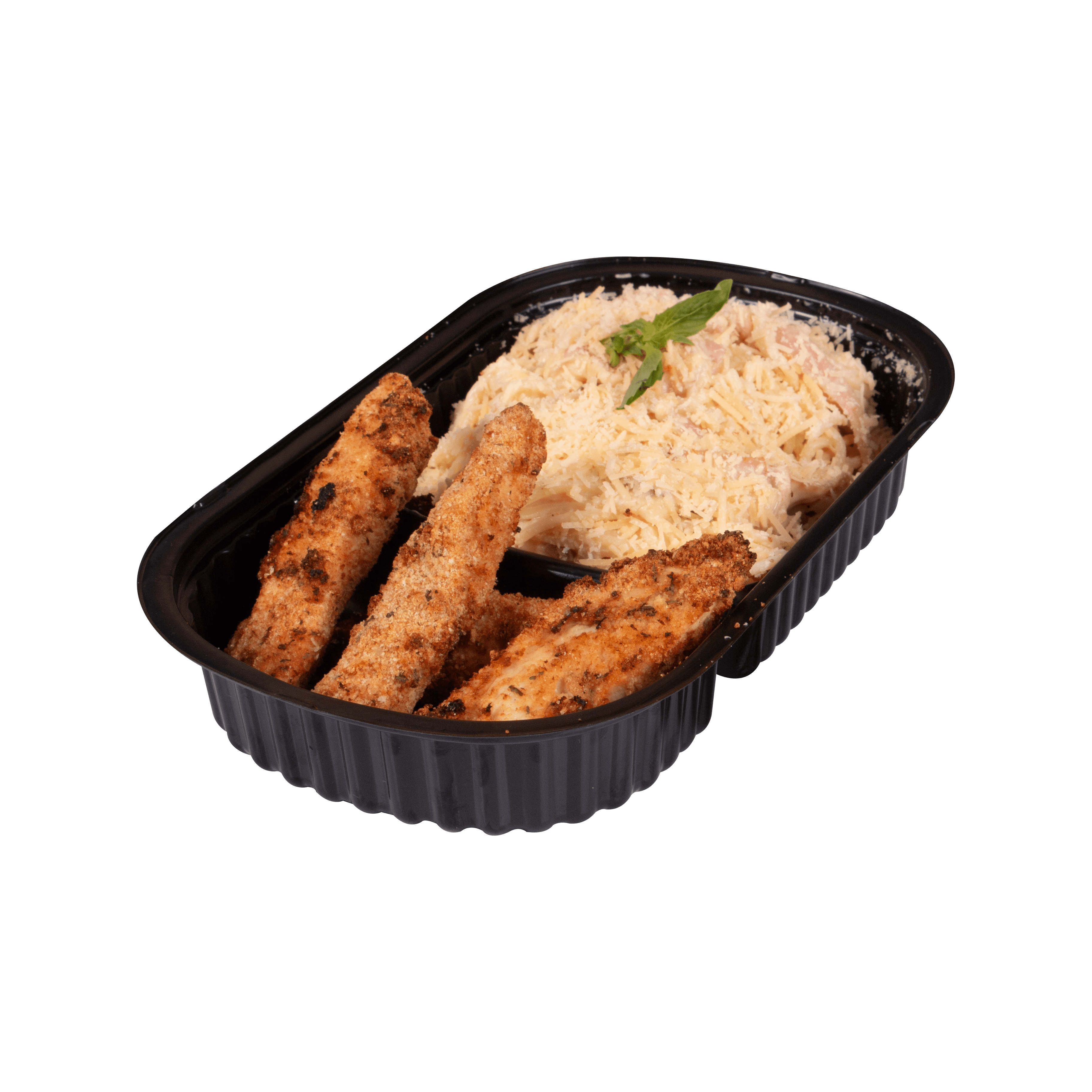 Pasta envuenta en salsa alfredo a base de bechamel con jamón, champiñones frescos, queso mozzarella y parmesano. Acompañada de lascas de pechuga de pollo apanadas, pan tostado + gaseosa 12 Onz (Sabor sujeto a disponibilidad)