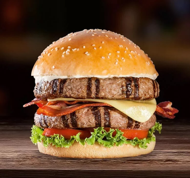Pan artesanal, doble carne angus, queso mozzarella, tomate, lechuga.