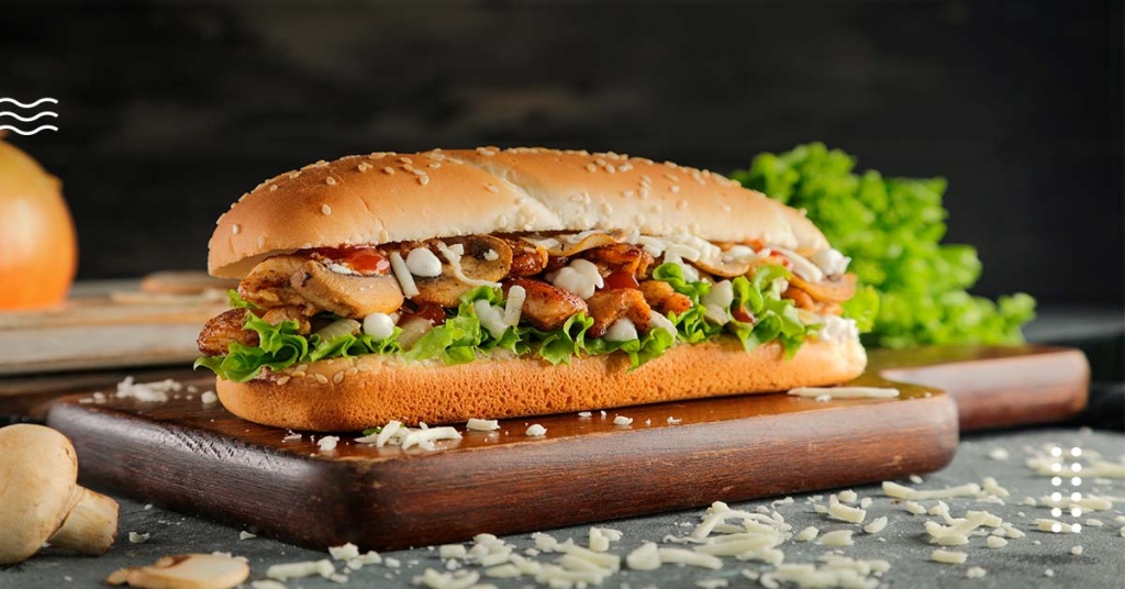Pan artesanal, pollo a la plancha, lechuga, papa chongo, queso mozzarella.