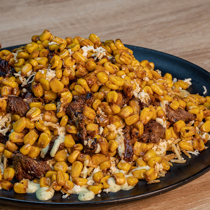 Carne a la plancha, maíz desgranado, queso costeño, papa chongo.