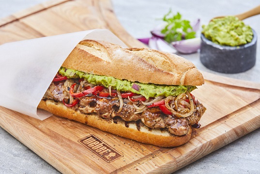Pan artesanal, pollo a la plancha, queso mozzarella, tomate, lechuga batavia.