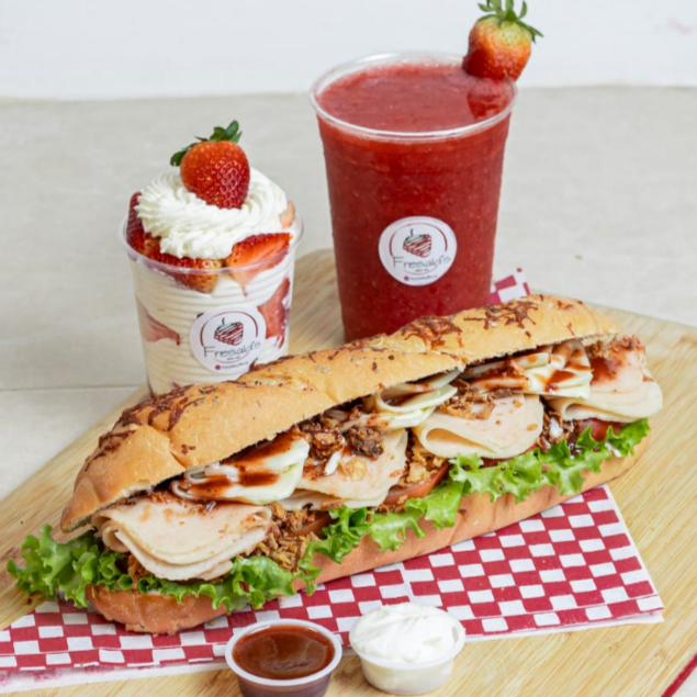 Combo 3 Productos: Sandwich + Fresas + batido