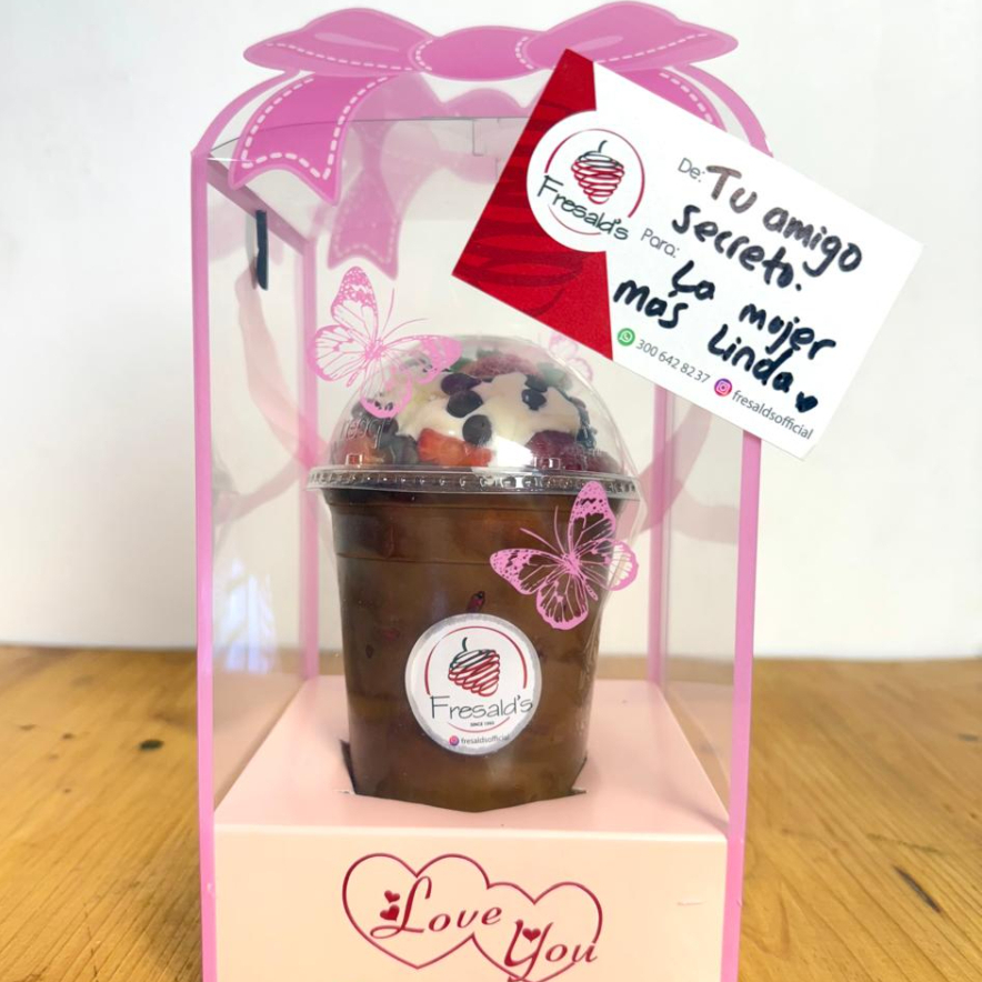 Fresas con crema + nutella + chips de chocolate + caja en acrilico + tarjeta DE: PARA: