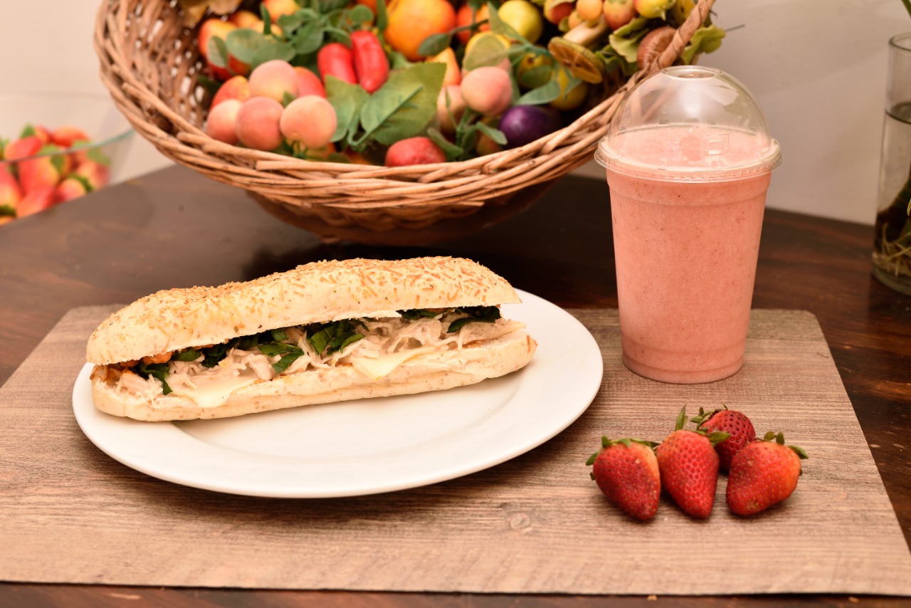 1 Sándwich Jamón de res, vegetales, queso y cebolla crunchy caramelizada + 1 Batidofresa 12 Oz