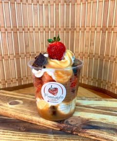 1 Parfait de Fresa 12 Onz + Salsa de Fresa