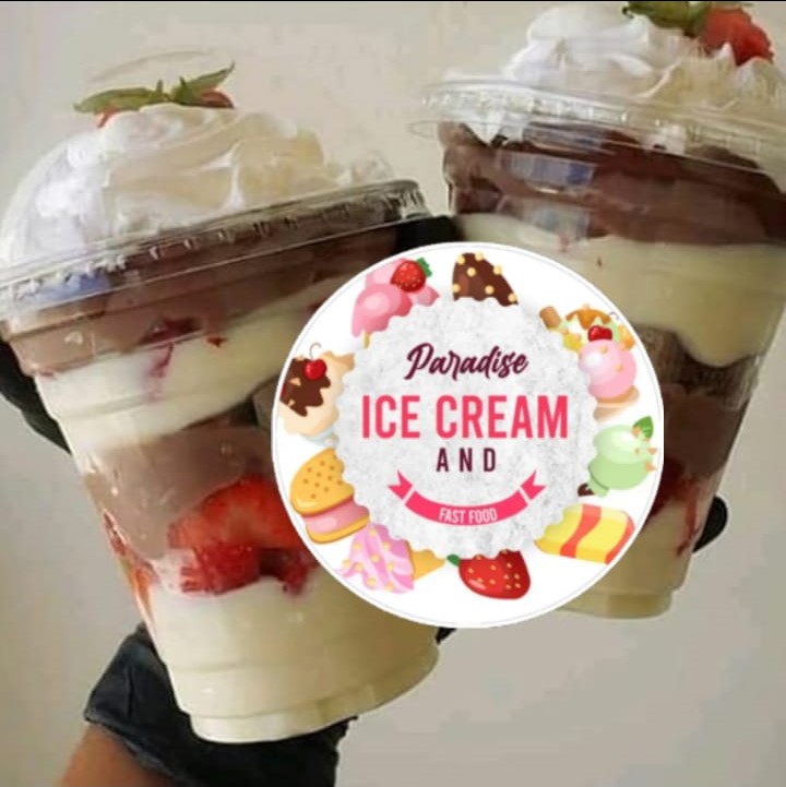 vaso de 9 onzas de fresas con crema de la casa , leche en polvo , leche condensada