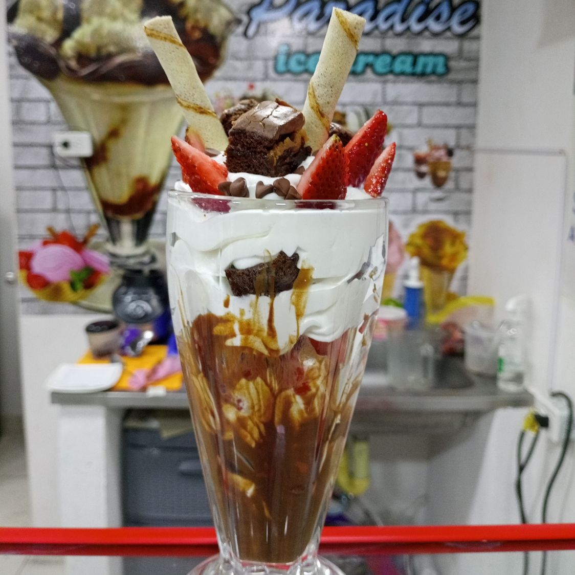 vaso de 16 onzas de fresas con crema de la casa , quipitos , leche condensada