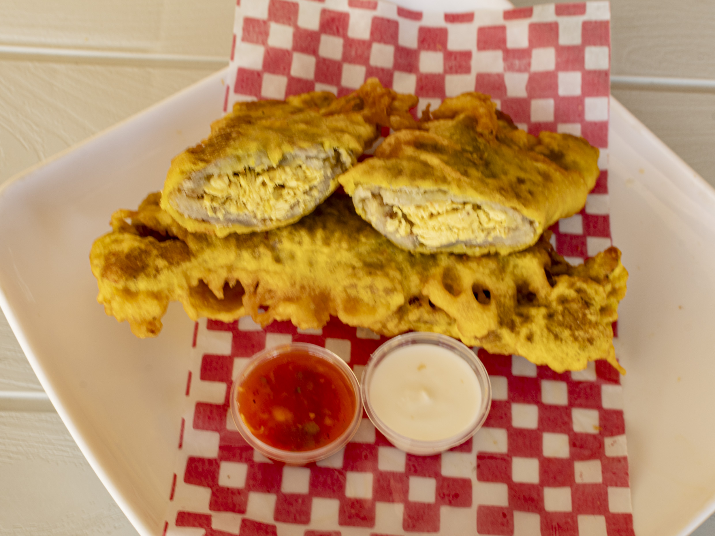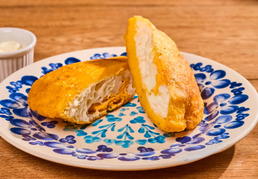 Masa de harina de trigo frita relleno con queso costeño.