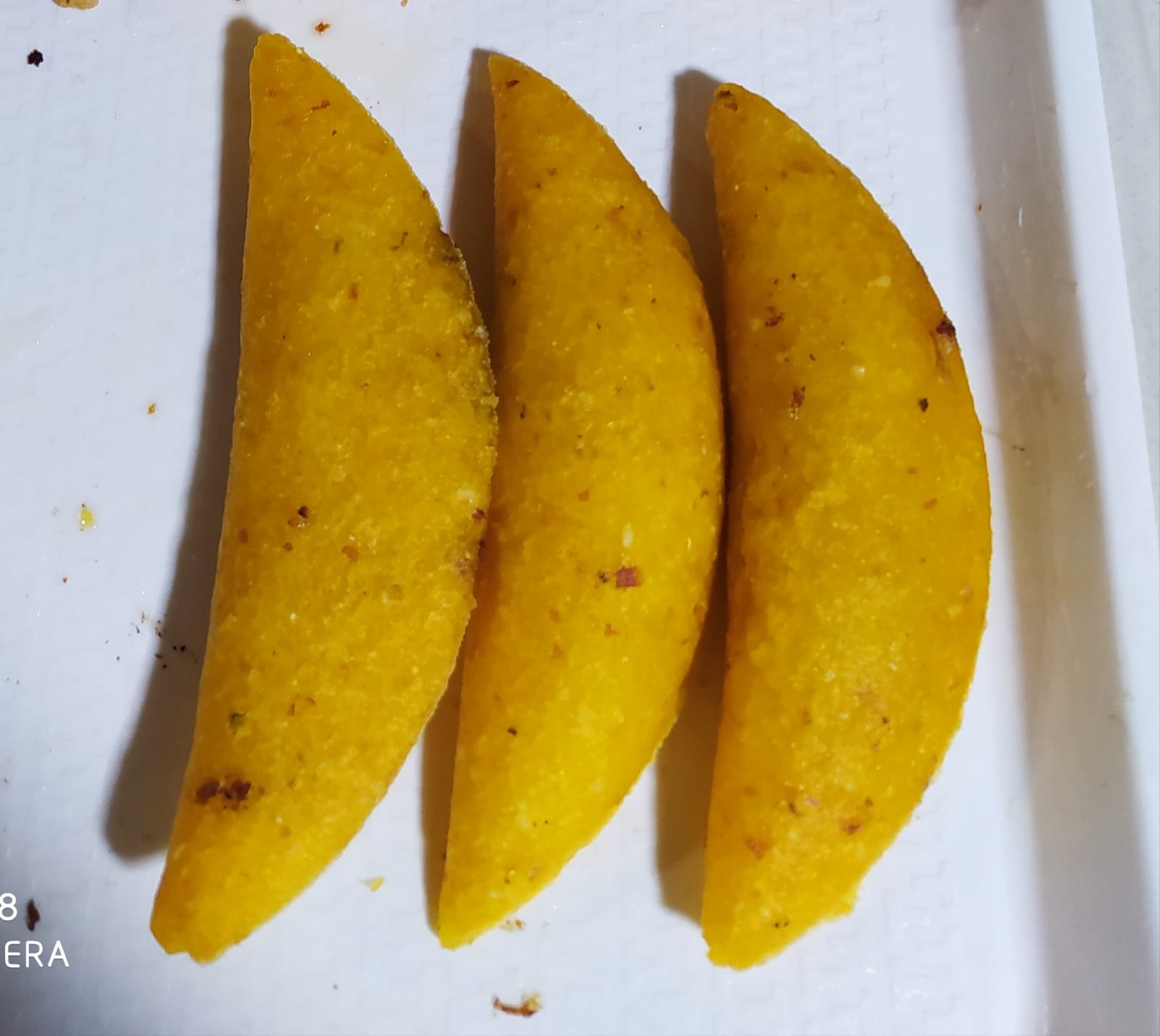 Masa de maiz blanca o amarilla frita rellena con huevo cebolla y tomate