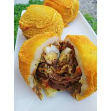 Se prepara un guisado o picadillo que combina carne molida (res o cerdo) con pollo deshebrado.