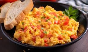 Huevo revuelto con jamon (bollo, arepa o yuca).